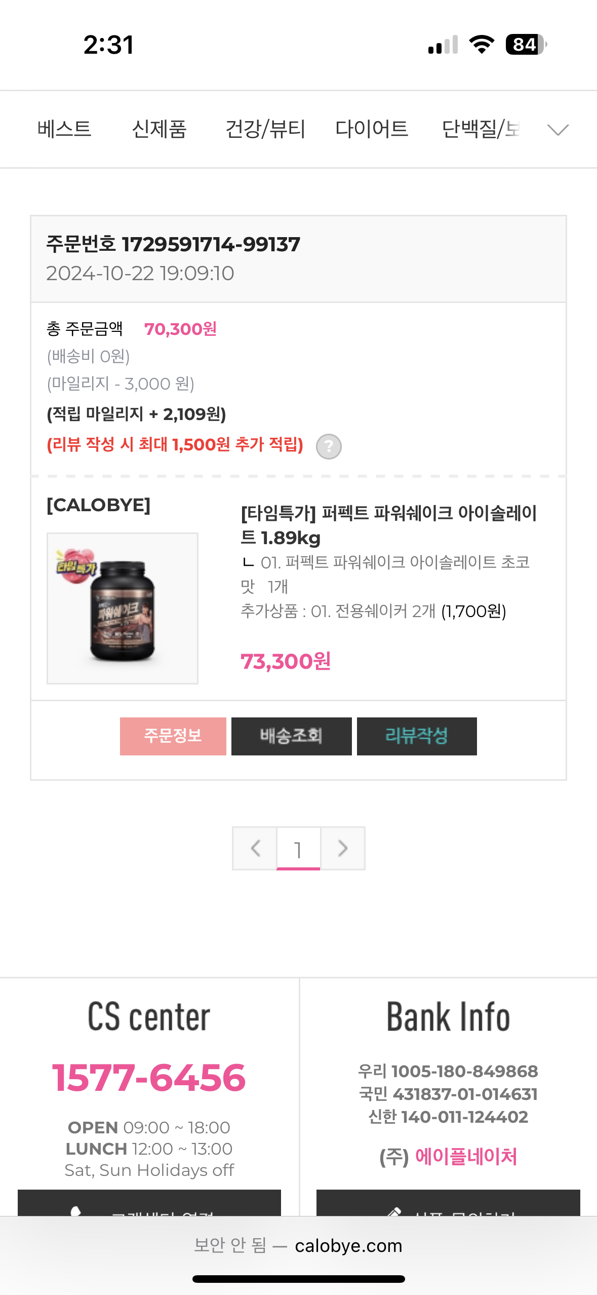 운동후 드셔서 대신 주문해드렸어요.