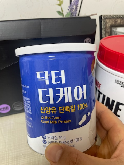 닥터 더 케어 리얼 리뷰 들어갑니다. 헬스 좋아하는 사람으로서 닥터 더케어(산양유 단백질100%) 이거 좋습니다. 해외 타사 여러 단백질 제품도 많이 먹어 봤지만. 해외 단백질은 맛은 좋으나 먹다보면 피부트러블이나 소화불량같은 경우가 종종 발생했는데 닥터 더케이 10일동안두스푼씩(20g) 먹어본 결과 피부 트러블,소화불량 이런건 없었습니다. 풀림도 물에 뭉치지 않고 잘 풀립니다. 하지만 단점으로는 맛이 좀 별루였습니다. 향은 분유냄새나고 맛은 아무래도 산양유라 별루였습니다.맛 빼고는 다 괜찬습니다. 남녀노소 누구나 먹을수있고,닥터 더케어 먹고 운동 열심해서 득근하세요.