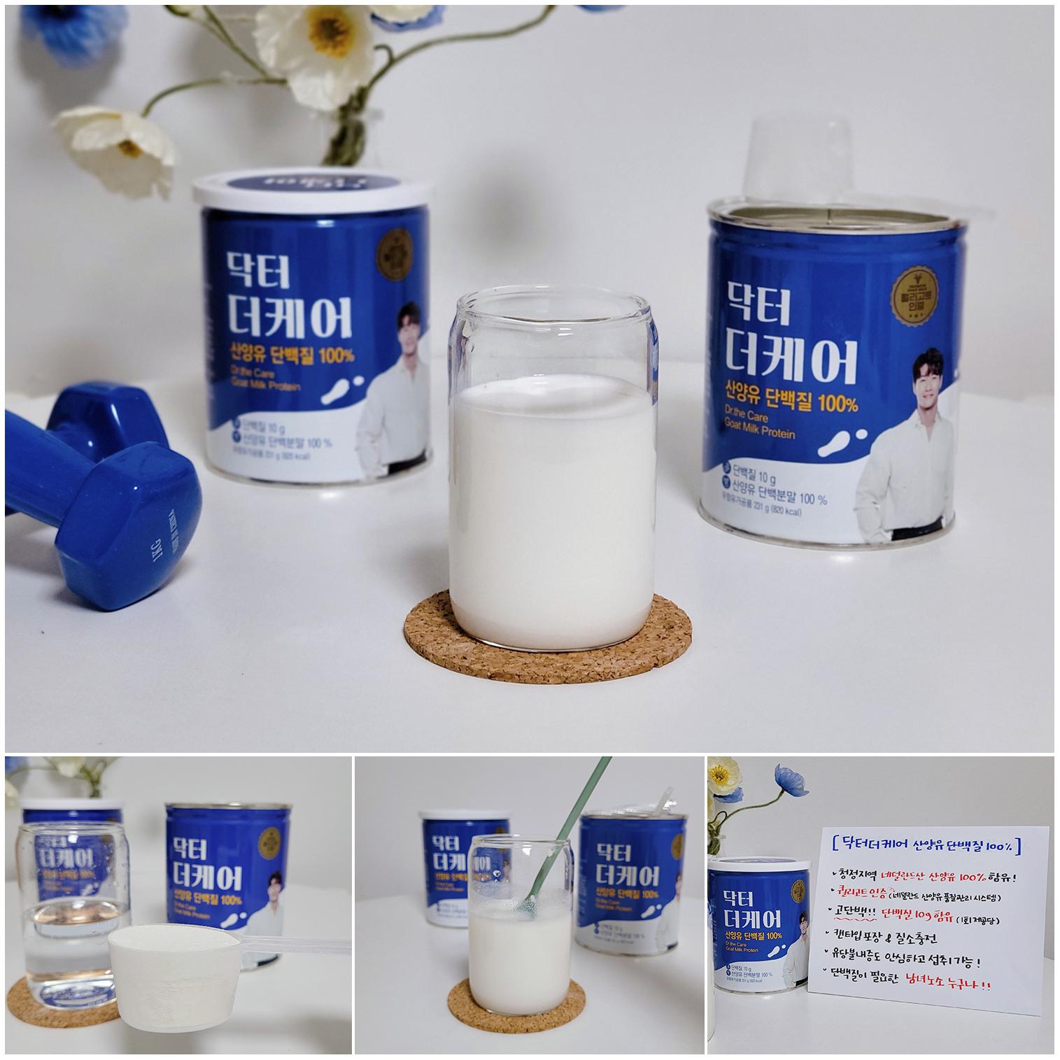 [균형잡힌 일상을 채워주는 닥터더케어 산양유단백질 100%] 우리 몸에는 탄단지가 골고루 채워져야 하는데, 이 중 단백질을 챙긴다는게 쉽진 않더라구요. 흔히 아는 닭가슴살이나 달걀 흰자, 우유로는 한계가 있어서 단백질 채우기가 가장 어렵더라구요. 그러던 중 이렇게 닥터더케어 산양유 단백질100%를 알게되어 좋은 기회로 단백질을 충전했는데, 가족 모두 함께 할 수 있어 좋은 시간이었어요. ★★★★★닥터더케어 섭취 하면서 좋았던 점은★★★★★ - 고단백으로 단백질 10g 함유! 닥터더케어의 1회 제공량인 16.5g을 섭취하면 1일 영양성분 기준치 18% 충족할 수 있어 좋았어요. (*16.5g은 제품 내 들어있는 전용스푼을 평평하게 채운 용량으로 물 120~150ml에 타서 섭취하면 된답니다.) - 쉽고 빠르게 녹아서 음용하기 편해요. 물 150ml정도에 평평하게 채운 한 스푼을 넣고 잘 저어주거나 쉐이커로 흔들면 빠르게 녹아서 좋았어요. 특히 찬물에도 금방 녹고, 가루가 남아있지 않아 음용이 편했어요. - 제품은 캔 타입으로 알리미늄 속 뚜껑, 질소충전으로 안심보관이 가능했고, 오픈 후에는 뚜껑을 닫아 서늘한 곳에 보관하면 되니 보관하기도 간편했어요. - 70대인 아빠께도 드렸는데, 속이 편안하고 부담없어서 먹기 좋다고 하시더라구요. 이 전에는 단백질을 채우고자 우유를 드셨는데, 찬우유를 드시면 가끔 탈이나셨는데, 닥터더케어 산양유 단백질을 드시면서 속이 부드럽고 소화가 잘되어 편안하다고 좋아하세요. 동생도 유당불내증이 있어 우유를 안먹는데, 요 제품은 매일 한 잔 씩 타서 출근한답니다. - 거부감 없는 맛으로 든든하고 탄탄한 맛이에요. 첨가물 없는 100% 산양유 단백질이라서 달지 않고 고소해서 좋아요. - 또한 닥터더케어 산양유단백질은 퀄리고트 인증을 받았대요! 퀄리코트란 청정한 네덜란드 농림부에서 운영하는 산양유 품질관리 시스템으로, 농장의 위생이나 원유의 품질 등 엄격한 심사기준을 통과해야 인증을 받을 수 있다고 해요. 그래서 더 안심하고 가족과 함께 매일 한 잔씩 타서 섭취할 수 있었어요^^ 단백질을 더 잘 채우고 싶은 분들, 가족과 함께 산양유 단백질 섭취를 원하는 분들, 특히 유당불내증이 있거나 소화가 잘 되고 속이 편안한 섭취가 필요한 어르신, 그리고 운도을 열심히 하시는 분들까지... 단백질이 필요한 모든 순간엔 닥터더케어 산양유 단백질 100%를 추천합니다! *SNS후기에는 더 많은 사진이 있습니다^^* -블로그 후기 https://blog.naver.com/ehjiyo86/223431210236 -인스타그램 후기 https://www.instagram.com/p/C6Wnt3zJjNX/