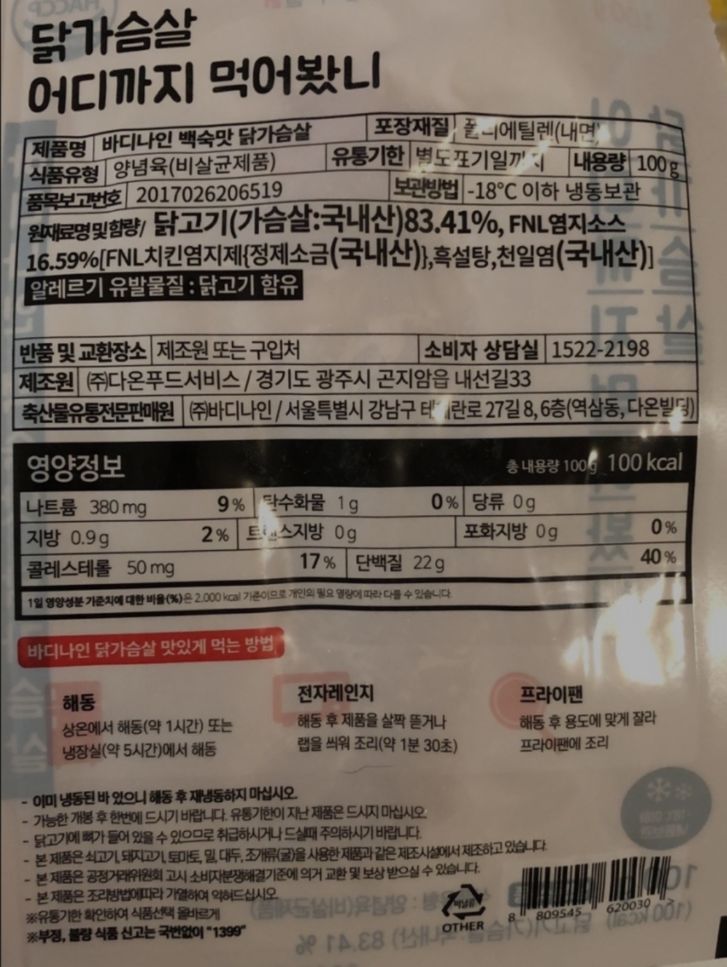 해동시켜 드시면 퍽퍽하지않게 단백질 22그램 가능합니다.