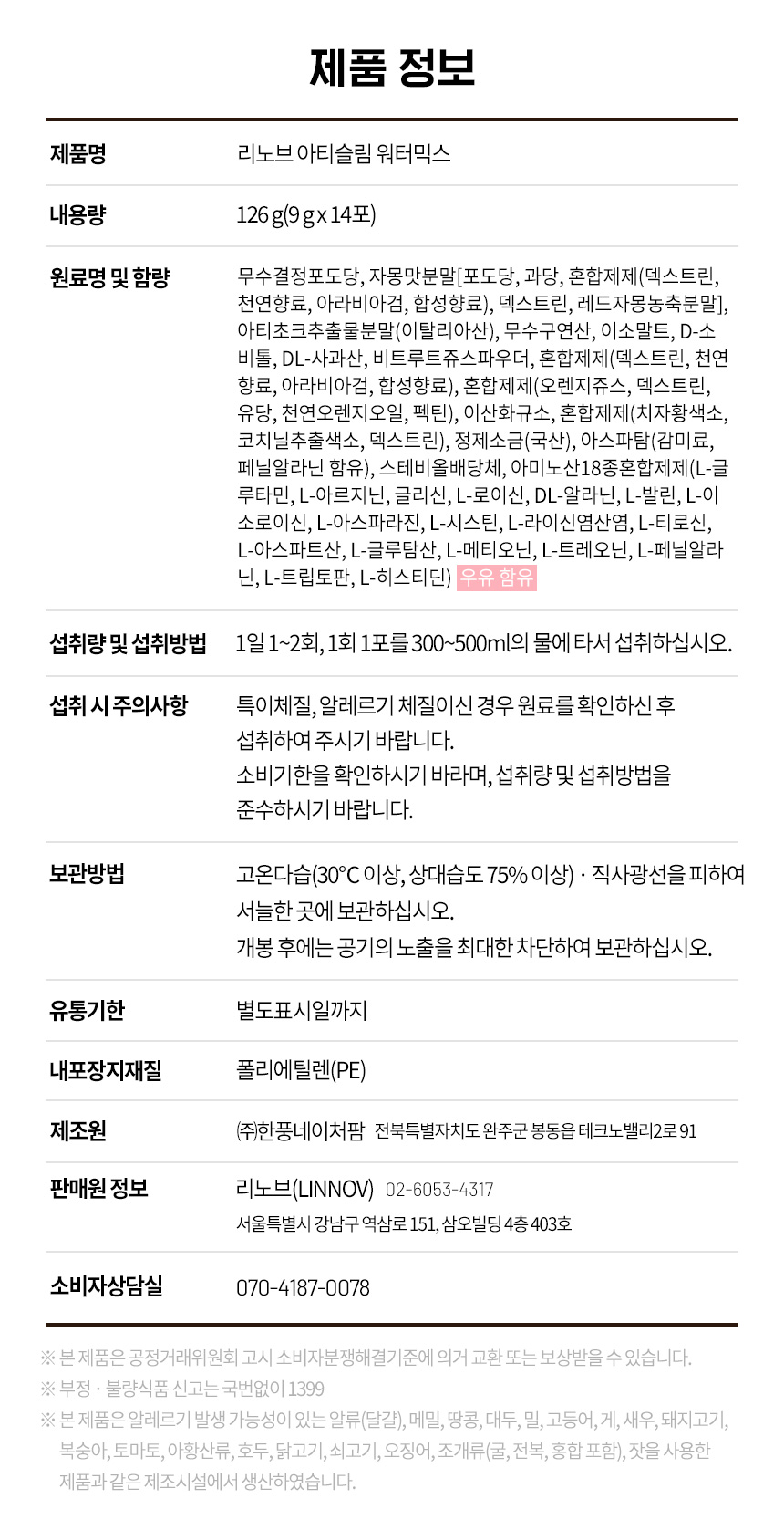 내용량 상품 이미지 및 제품 정보 참조 제조업소 상품 이미지 및 제품 정보 참조